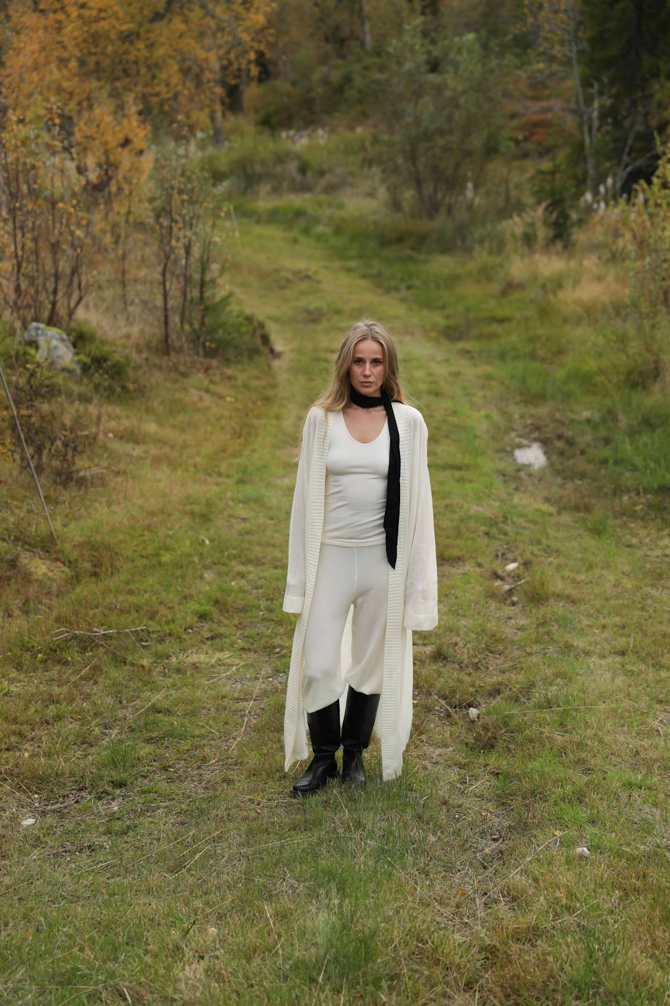 Amelia Top is knitted in an exclusive blend of 75% extrafine merino wool and 25% silk, giving it a smooth, soft, and lightweight quality. It is designed with a V-neckline and wide straps, featuring a slim fit that highlights the figure. A perfect top for both everyday wear and more sophisticated looks.