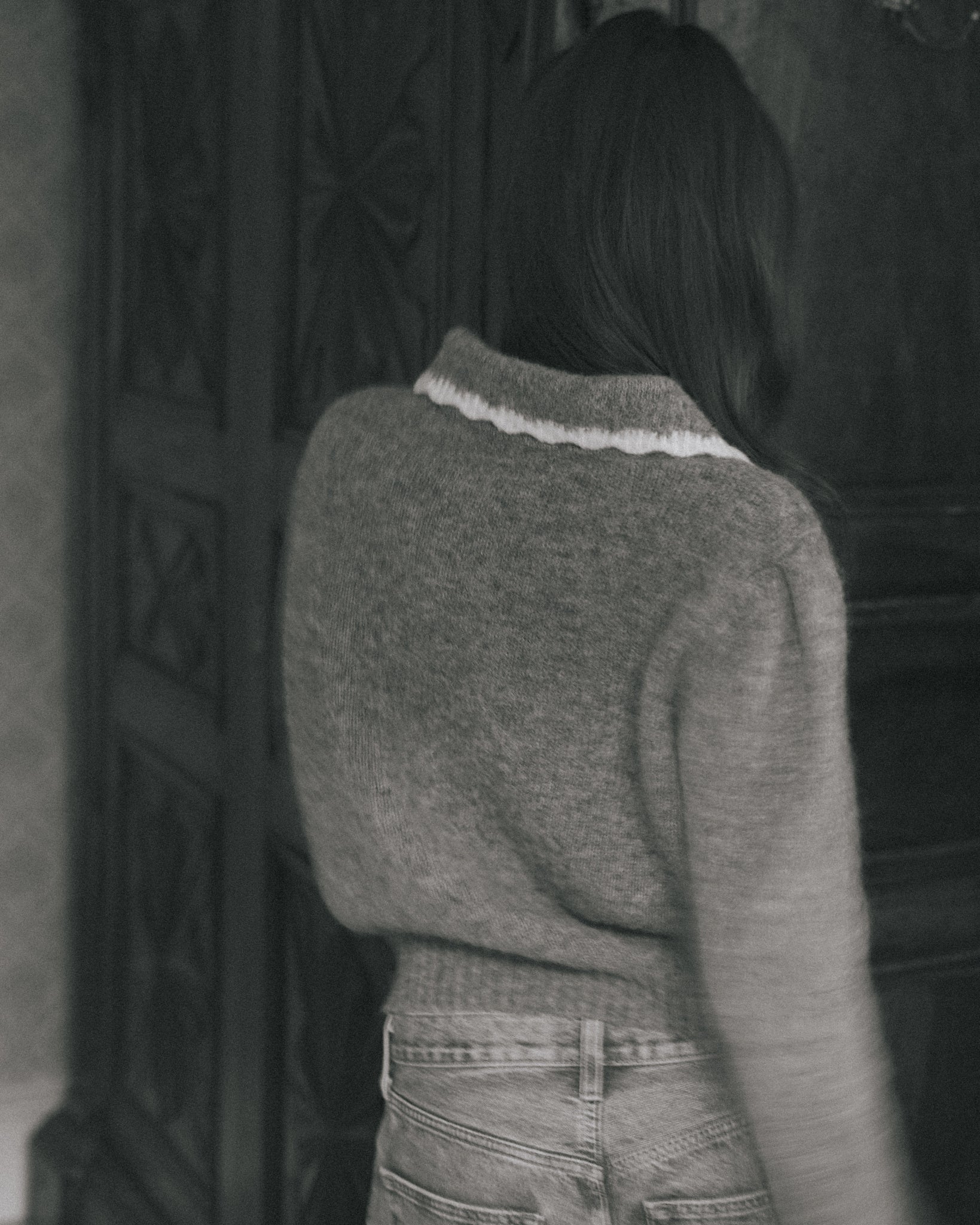 Our beautiful Isabella Cardigan is an elegant piece that has a jacket look with many fine details. Made of 65% baby alpaca, 10% fine merino wool, and 25% polyamide, the cardigan has a soft and slightly fluffy texture. The cardigan features large buttons that blend perfectly, along with an elegant collar and pockets with stunning contrast details. The model wears a size M.