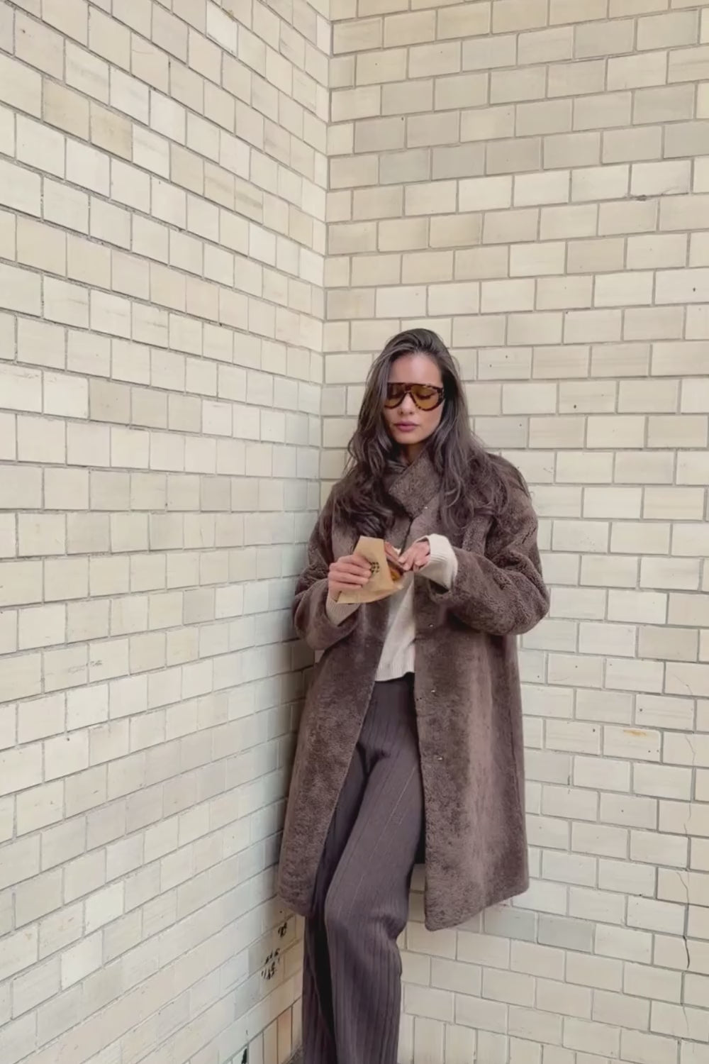 Jaclyn Coat embodies elegance and luxury. This exquisite jacket is made from 100% shearling lambskin, providing exceptional softness and warmth for those cooler autumn days.