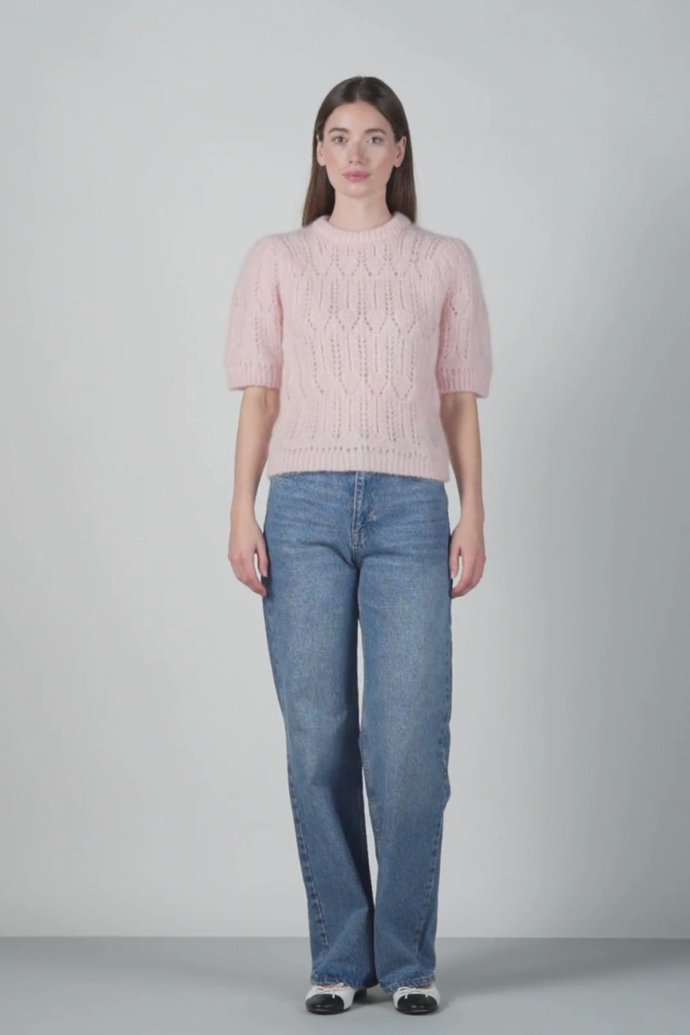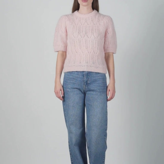 Koala Blouse is crafted from a thick and luxurious knit blend of 82% mohair, 16% polyamide, and 2% elastane, making it incredibly soft and comfortable. The blouse features short sleeves and a delicate knitted pattern, adding a feminine and elegant touch. Perfect for both everyday wear and special occasions when you want to combine style and comfort.
