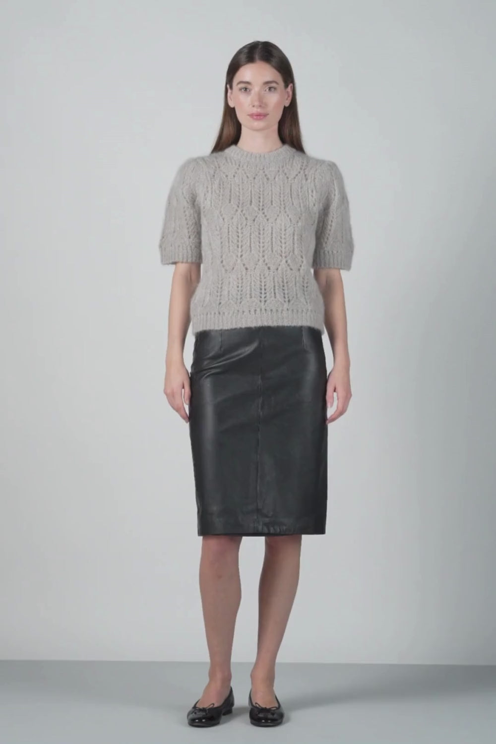 Koala Blouse is crafted from a thick and luxurious knit blend of 82% mohair, 16% polyamide, and 2% elastane, making it incredibly soft and comfortable. The blouse features short sleeves and a delicate knitted pattern, adding a feminine and elegant touch. Perfect for both everyday wear and special occasions when you want to combine style and comfort.