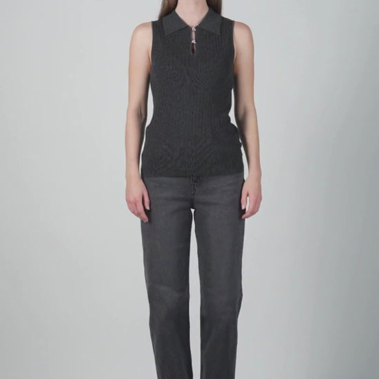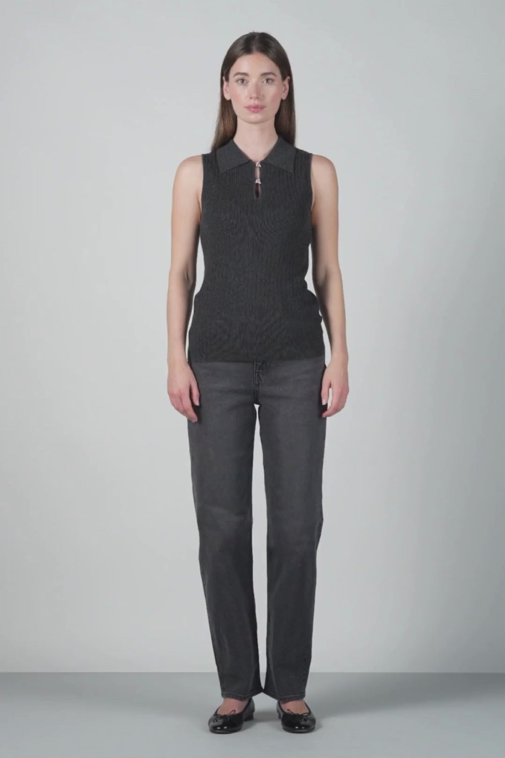 Our Maddie Top is a stylish sleeveless design featuring a refined collar that adds a touch of elegance. It fastens at the front with two beautiful buttons shaped like the O'TAY logo and adorned with rhinestones. Made from a luxurious blend of 75% merino wool and 25% silk, the Maddie Top is both soft and comfortable. Perfect as an elegant statement piece.