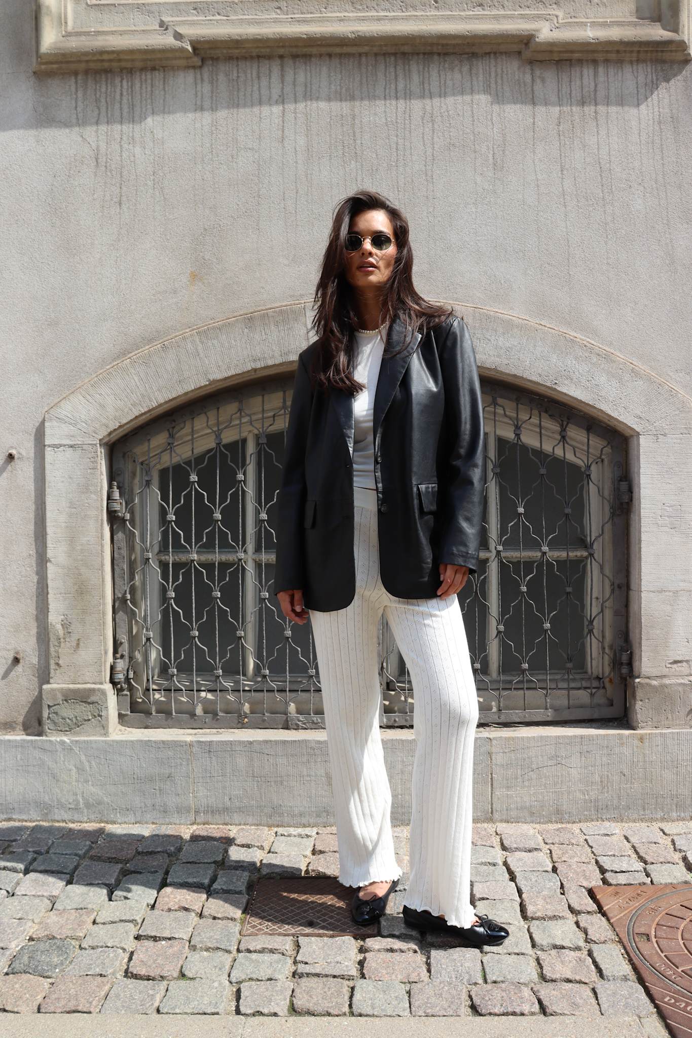 The leather blazer closes with two front buttons and has matching buttons at the bottom of the sleeves, which allows you to style in many ways. The discreet side pockets add both functionality and a modern touch.