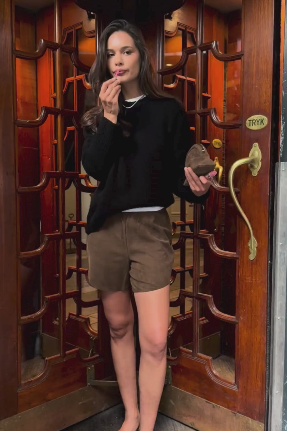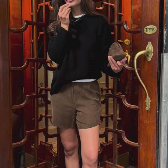 Norma Shorts are crafted from 100% goat suede. The soft suede adds both structure and depth to your look while feeling smooth and comfortable against the skin. The shorts feature a simple, timeless cut with an elasticated waistband, ensuring a flexible and comfortable fit. The minimalist design makes Norma Shorts easy to style across seasons and occasions. Pair them with a classic shirt for a sophisticated everyday outfit, a chunky knit during cooler months, or a blazer and loafers for a chic and polished look. However you choose to wear them, Norma Shorts are a stylish choice that blends comfort with understated luxury.